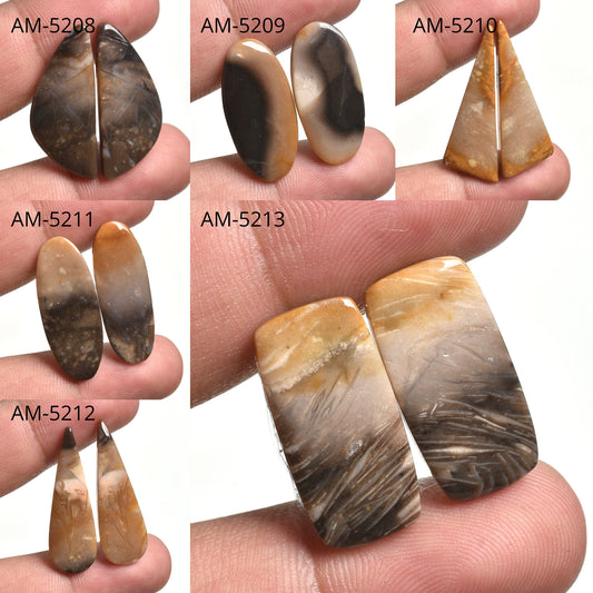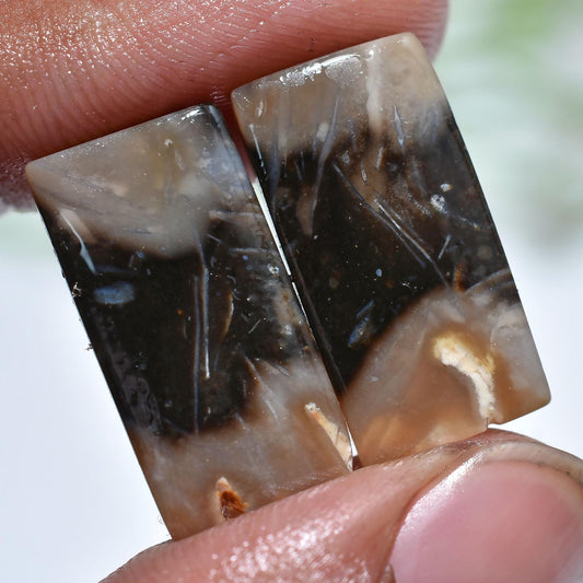 Exquisite Palm Root Agate Cabochons - Natural Loose Gemstone Pair for Earrings