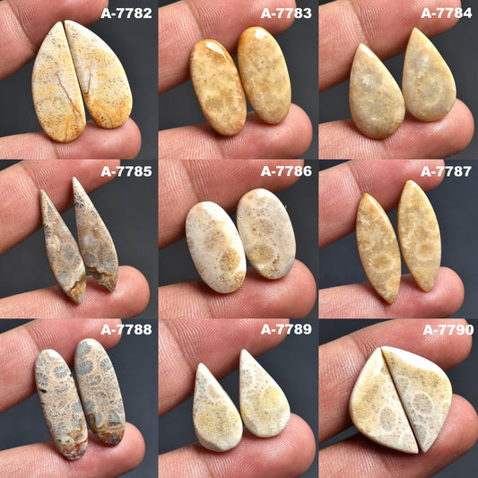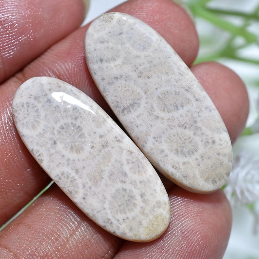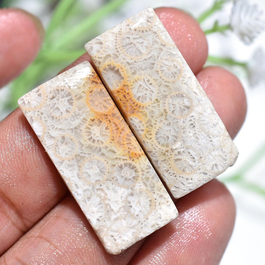 Natural Fossil Coral Cabochons, Earrings Pair for Custom Jewelry Gifts