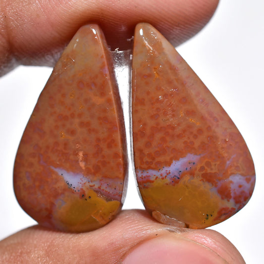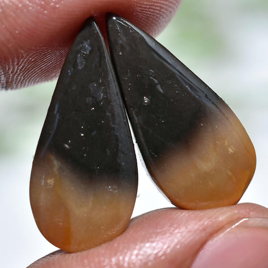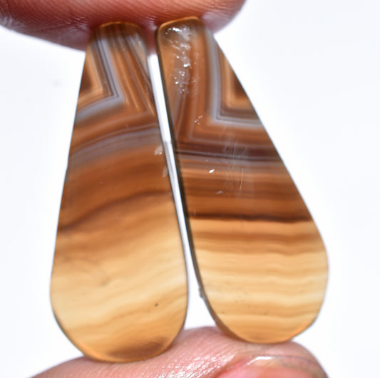 Natural Seam Agate Pair – Smooth Pear & Fancy Shape Cabochons For Earrings