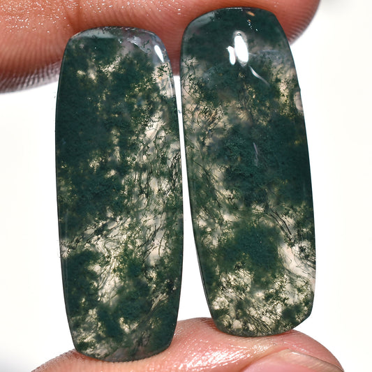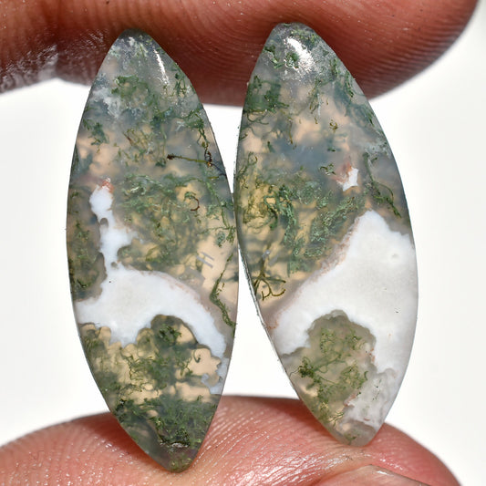 Rare Moss Agate Cabochon Pair, 100% Natural Green Moss Agate for Earrings