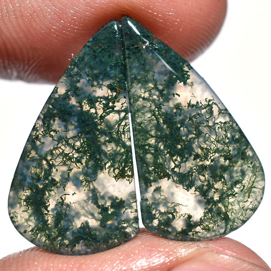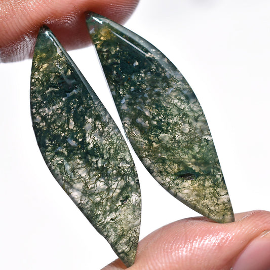 Rare Fancy Shaped Moss Agate Gemstone Pair for Designer Earrings