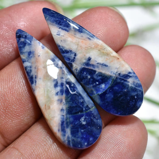 Buy Blue Sodalite Cabochon Earrings Pair – Teardrop Shaped Gemstones for Jewelry Making