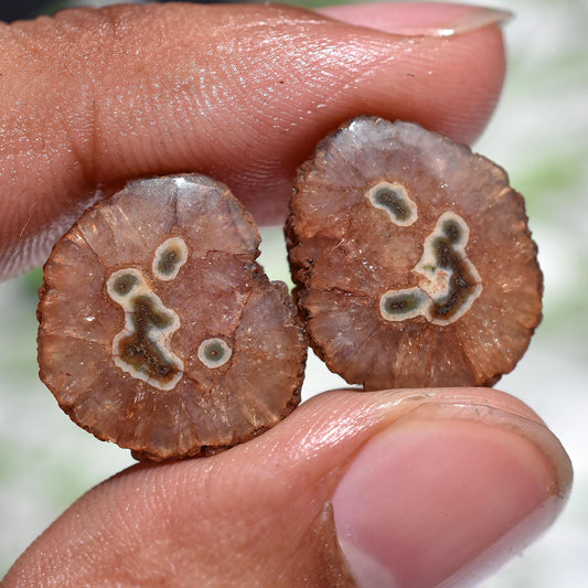 Brown Solar Quartz Cabochon Pair – Round Stalactite Gemstone for Earrings & DIY Jewelry