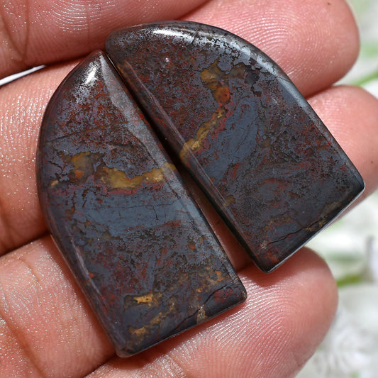 Natural Ocean Jasper Cabochon Pair – Matched Mix Shaped Stones for Earrings