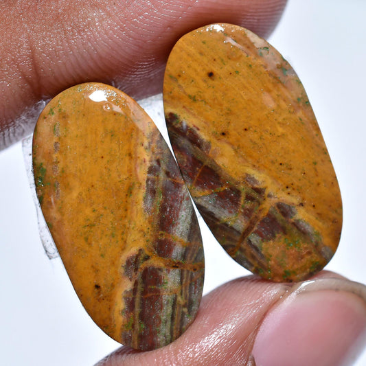 Wholesale Mookaite Jasper Stone Pair – Yellow & Red Jasper Cabochons for Earrings