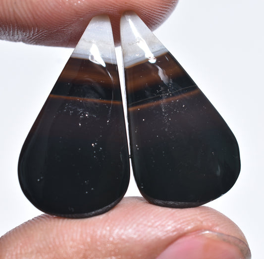 Natural Black Banded Agate Pair – Hand Polished Pear Shape Loose Gemstone Pair for Jewelry Making