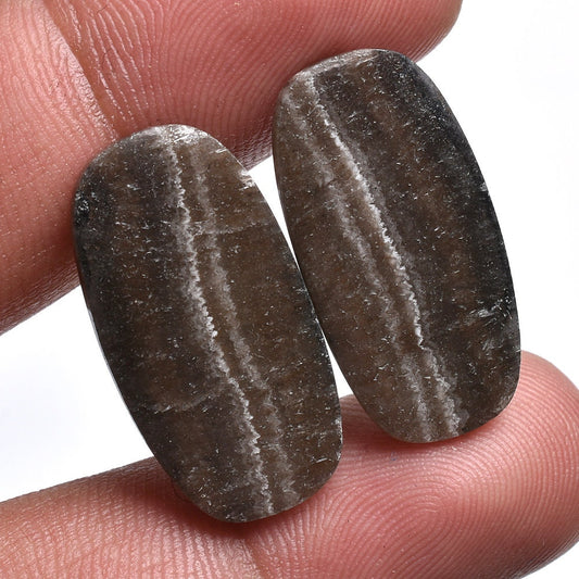 Brown Zebra Calcite Pair – Fancy-Oval Cabochon for Earring Making