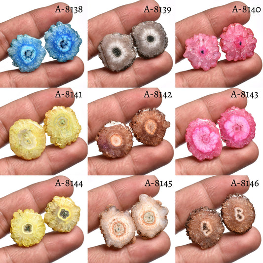 Round Solar Quartz Pair Cabochon - Colorful Stalactite Quartz Gemstones for DIY Earrings