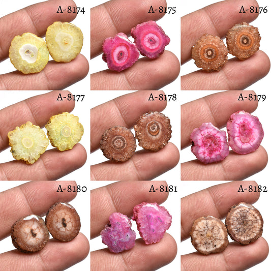Solar Quartz Pair - Solar Druzy Stalactite Slice Gemstones for Earrings