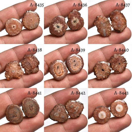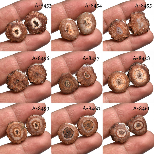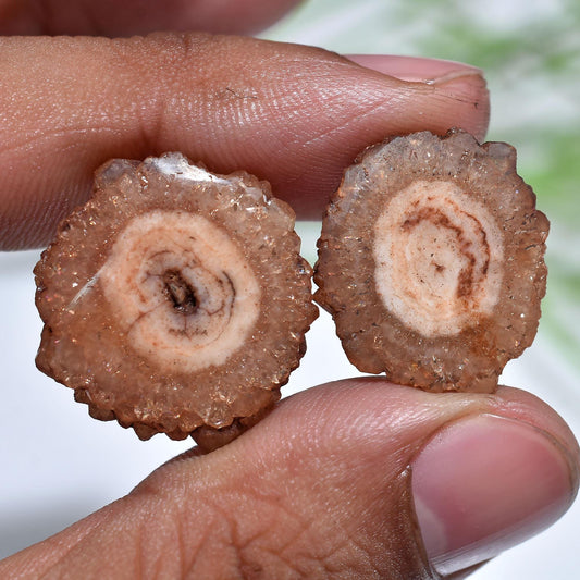 Solar Quartz Earring Pair – Round Shape Brown Stalactite Slice Cabochon Pairs
