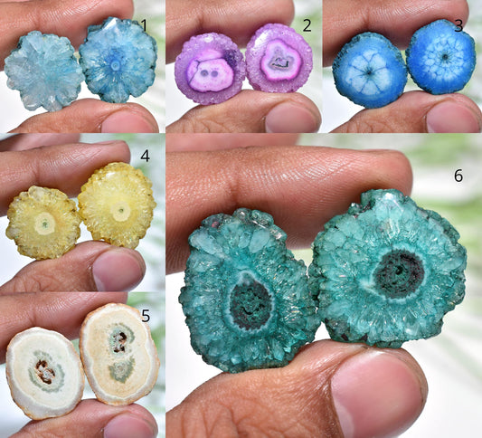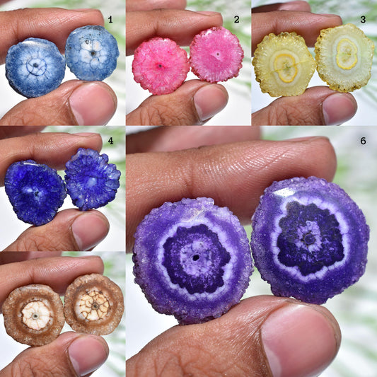 Multicolor Solar Quartz Pair - Round Stalactite Slices