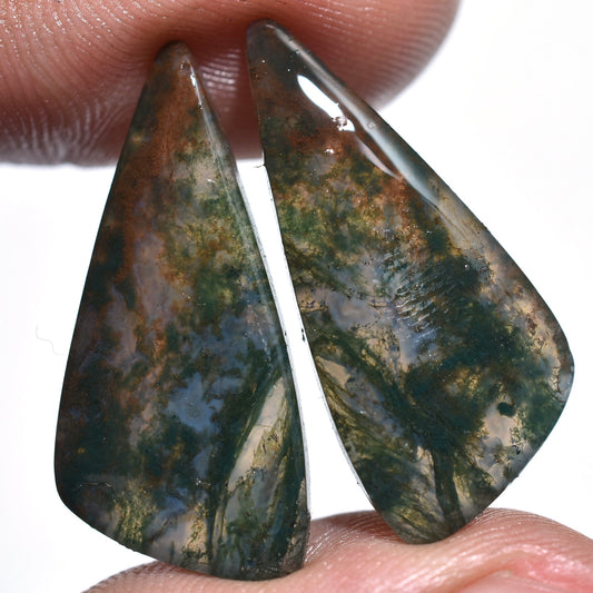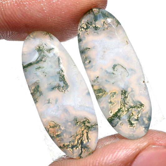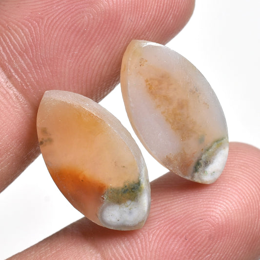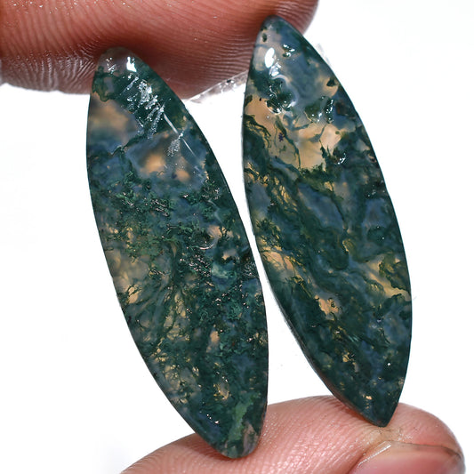 Natural Marquise Moss Agate Loose Pair – Unique Cabochons for Earring Designers