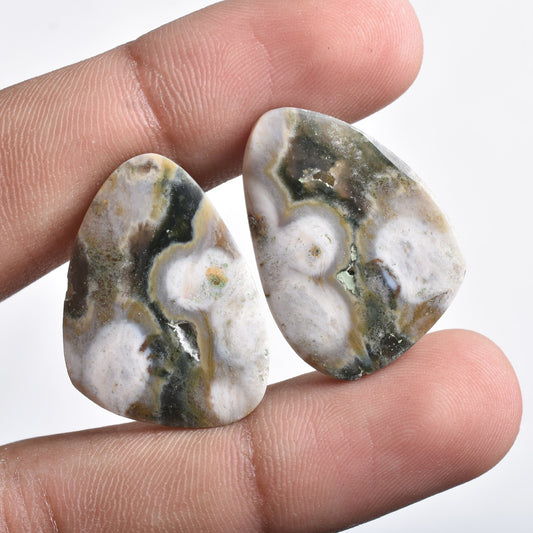 Ocean Jasper Earring Pair – Rare Matched Gemstone Cabochons for Jewelry
