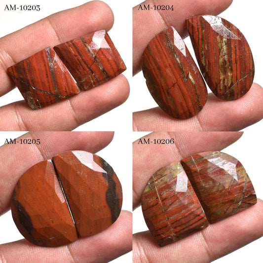 Natural Red Jasper Matched Pair - Faceted Jasper Earrings Stones for Custom Jewelry