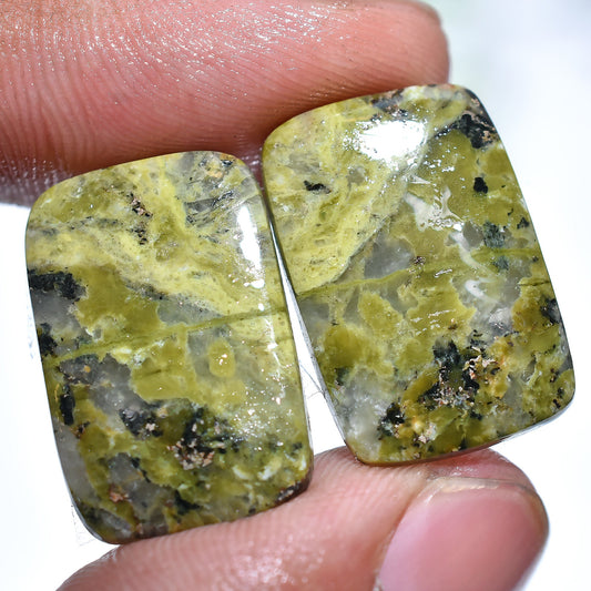 Green Unakite Cabochon Pair - Natural Gemstone for Earrings & Healing Crystal Gifts