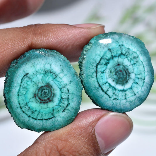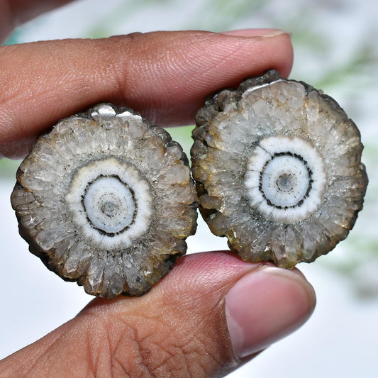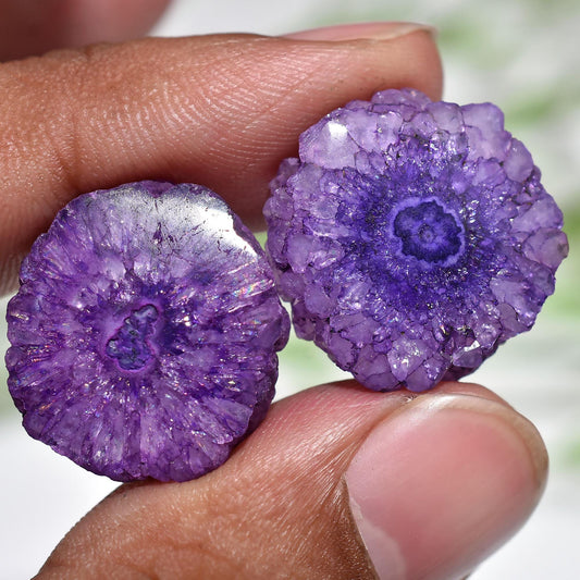 Beautiful Solar Quartz Pair Cabochon – Round Geode Stalactite Gemstones
