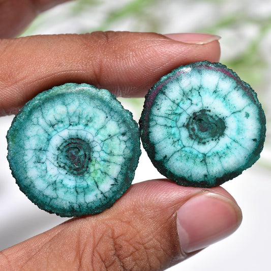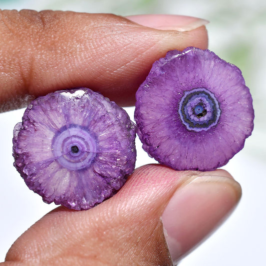 Round Solar Quartz Pair Gemstone – Geode Agate Stalactite Slice, Dyed Solar Quartz for Earrings