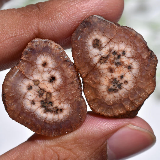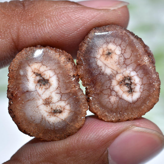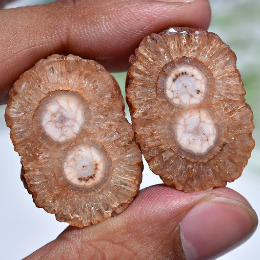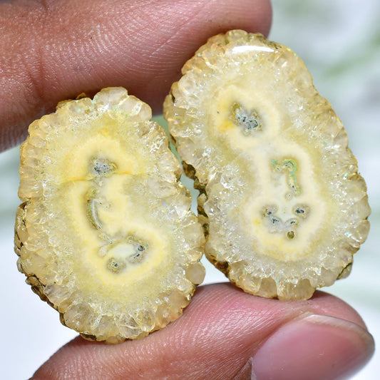 Amazing Solar Quartz Cabochon Pair – Geode Agate Stalactite Slices for Earring
