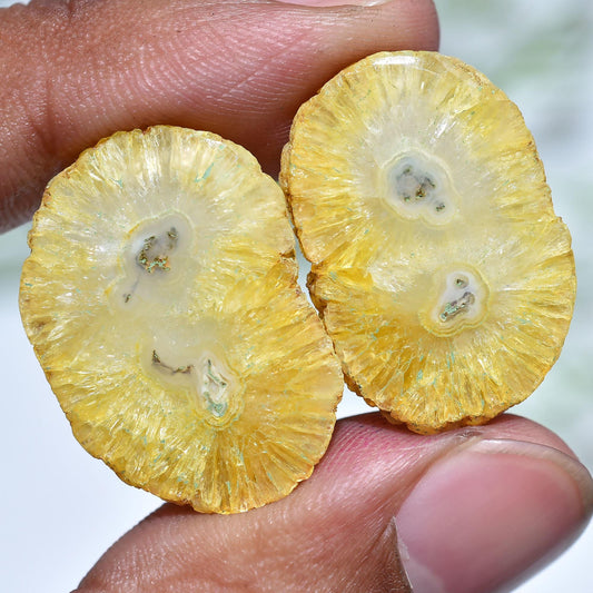 Yellow Solar Quartz Smooth Pair – Stalactite Gemstone Slices for Earrings