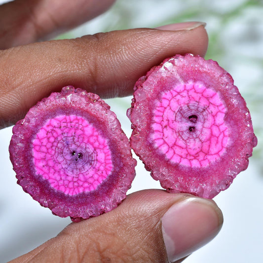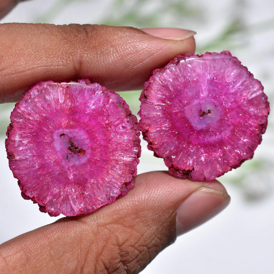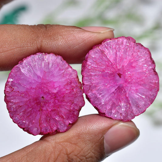 Lovely Solar Quartz Pairs – Pink Stalactite Gemstone Slices for Earrings