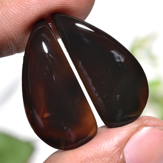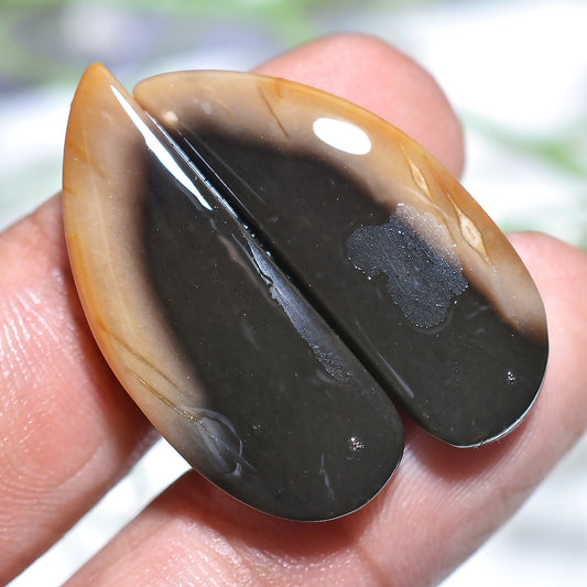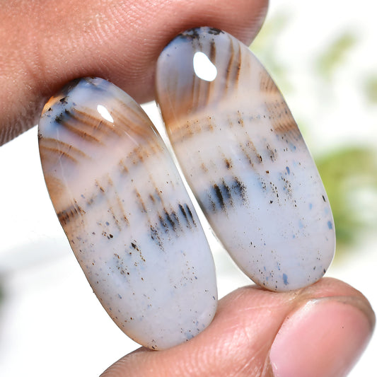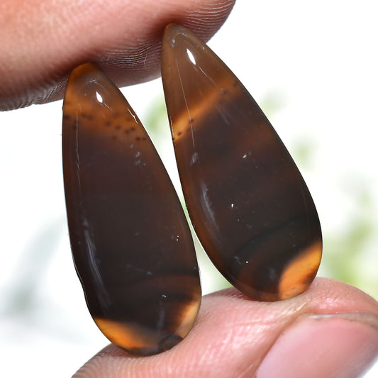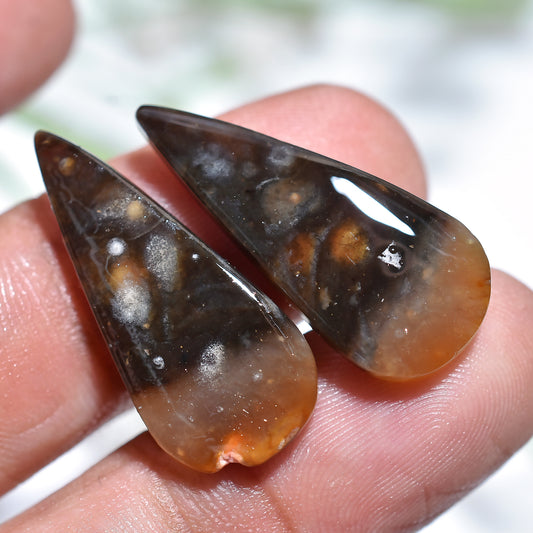 Elegant Palm Root Agate Pair – Teardrop Shaped Cabochons for Earrings