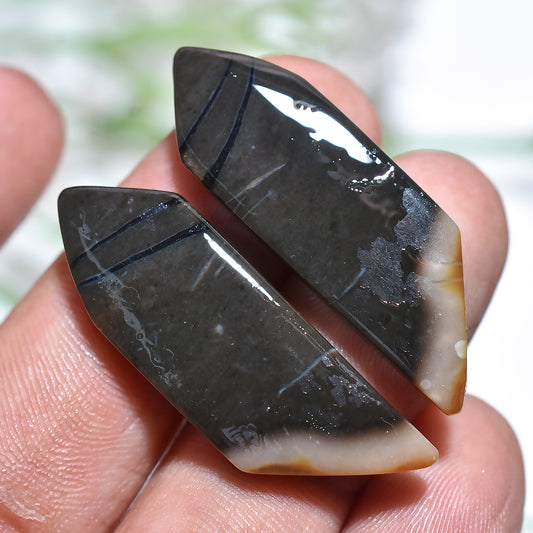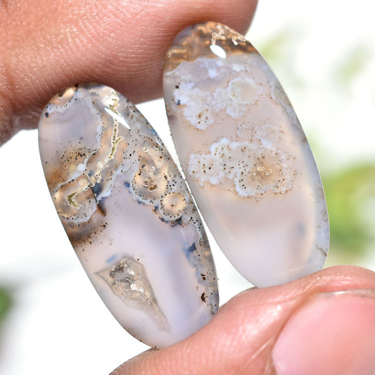 Montana Agate Cabochon Pair – Natural Polished Stones for Custom Jewelry