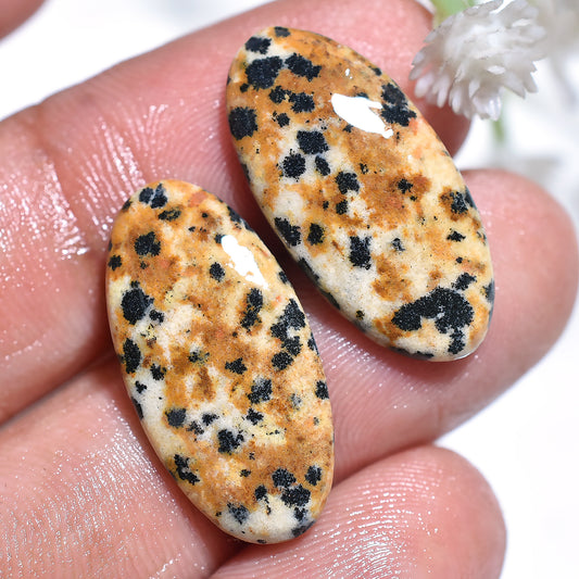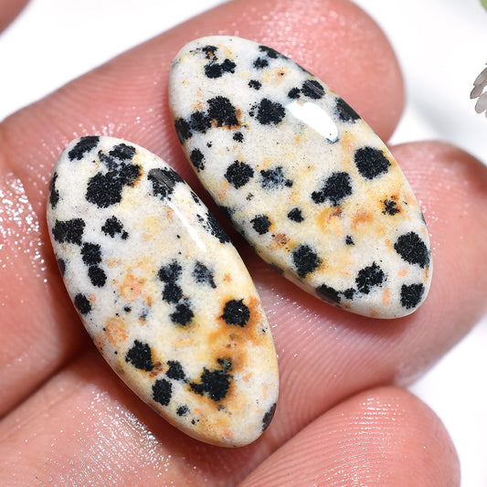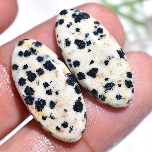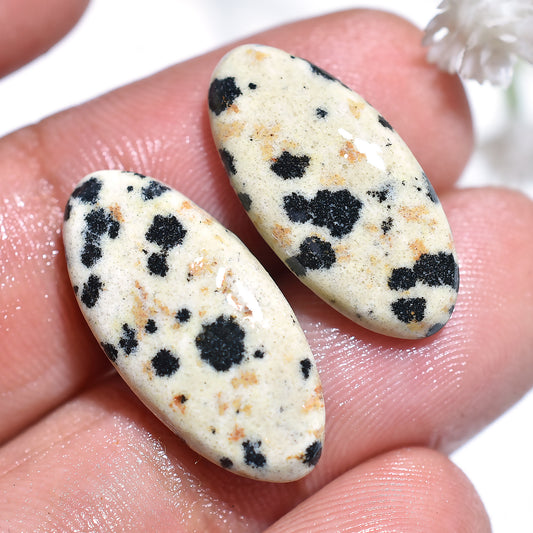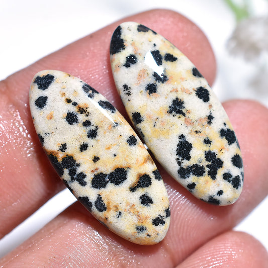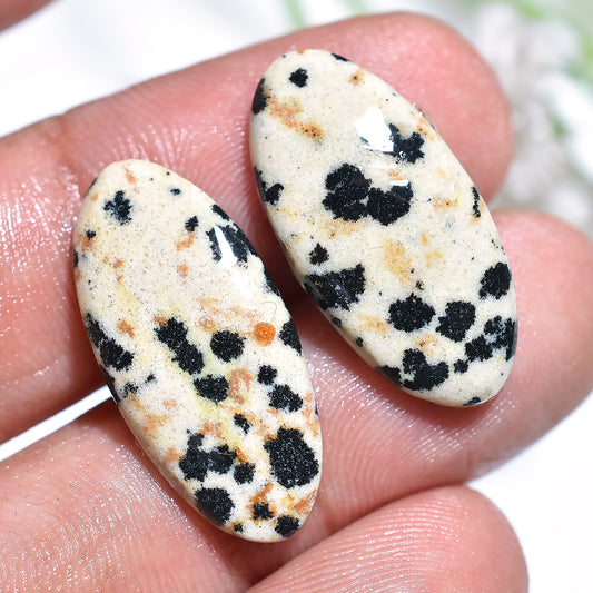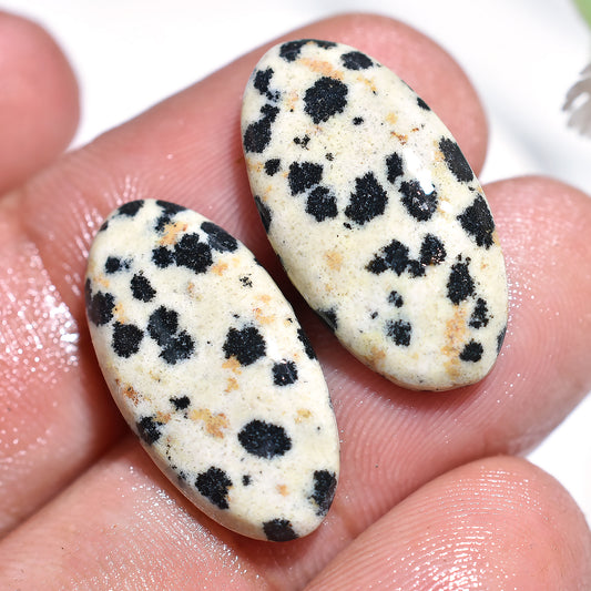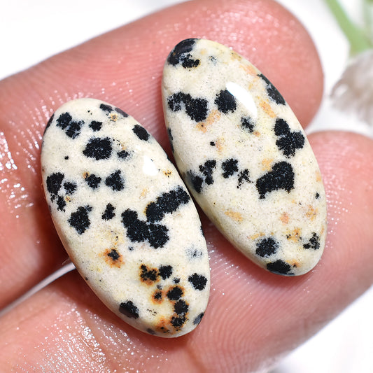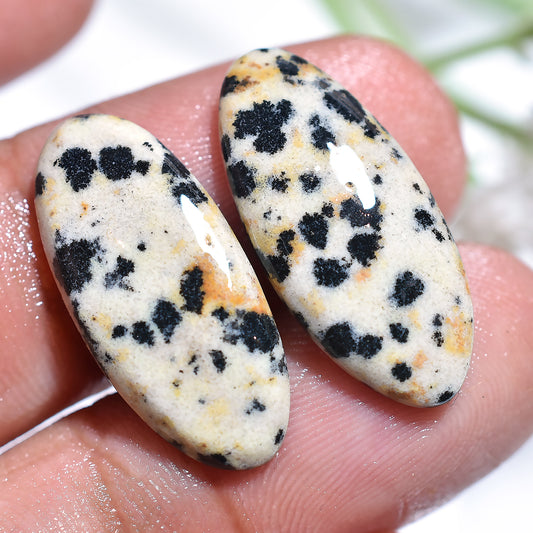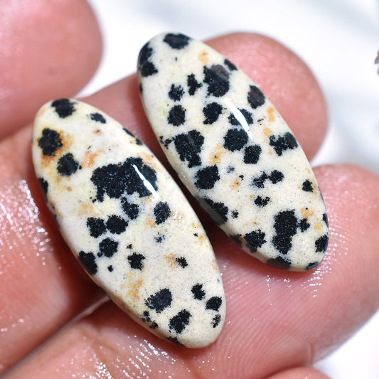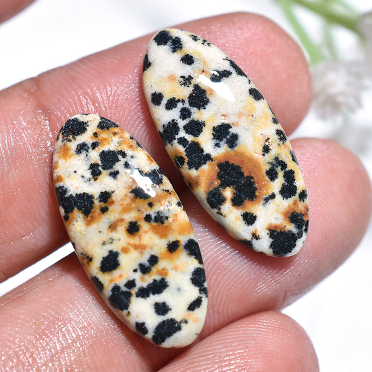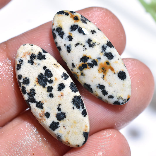 Natural Dalmatian Jasper Pair – Polished Cabochons for Earrings & Jewelry (11x22x2mm,/16ct)