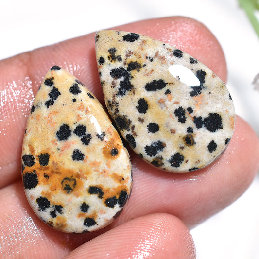 Polished Dalmatian Jasper Pair – Smooth Pear Shape Matching Stones for Crafts & Jewelry