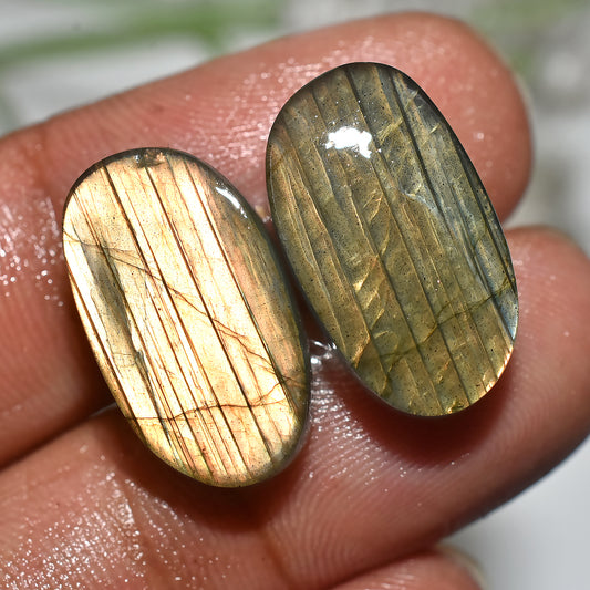 Labradorite Matched Pair Cabochons | Unique Jewelry Stones(10x21x5mm,/29ct)
