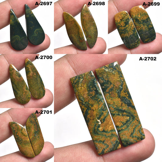 Moss Agate Pair - Smooth Loose Agate Cabochon for Earrings Custom