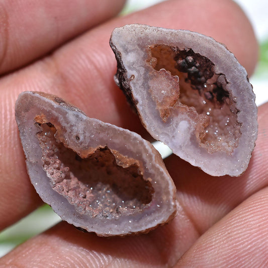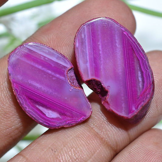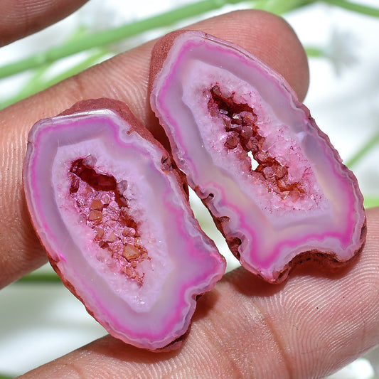 Lovely Pink Agate Druzy Stone Pair – Natural Geode Cabochons for Earrings
