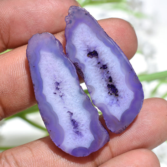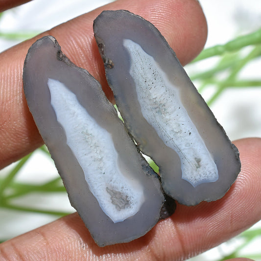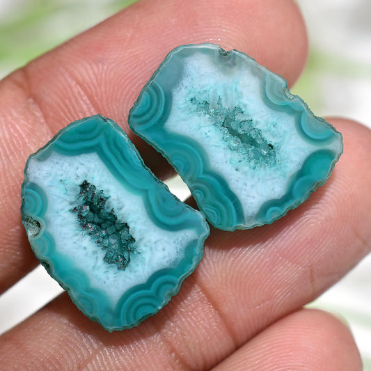 Blue Window Druzy Geode Pair – Blue Solar Quartz Agate Slice Matched Pair for Earrings