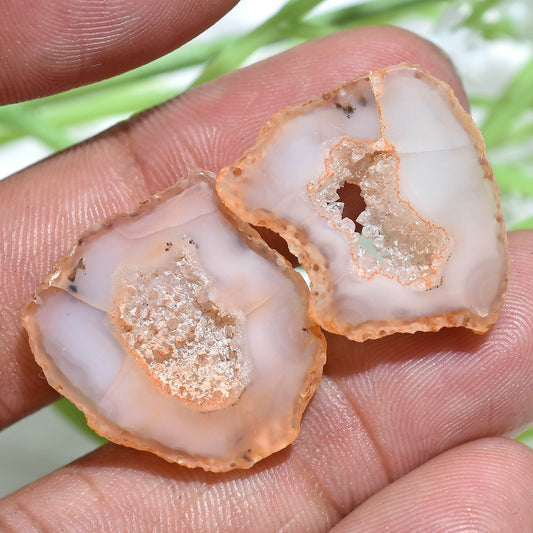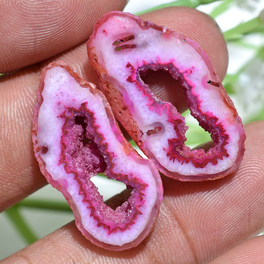 Pink Window Druzy Solar Quartz Gemstone Pair – Fancy Agate for DIY Earrings