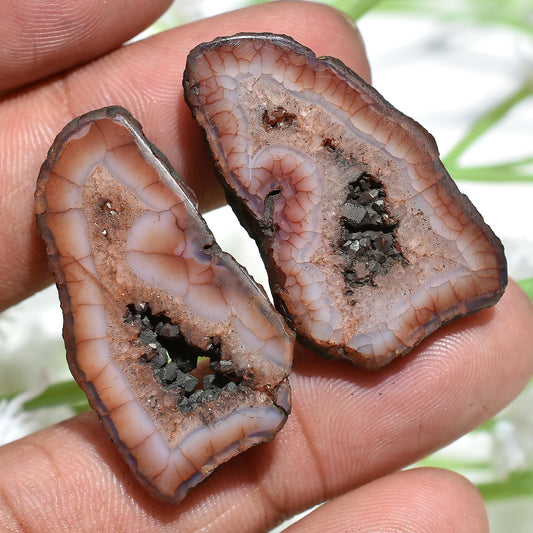 Unique Brown Window Druzy Geode Pair – Fancy Agate Druzy Gemstones for Earrings