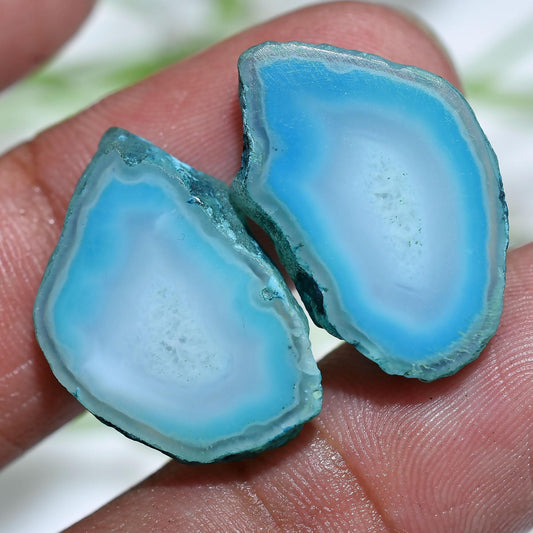 Natural Blue Solar Quartz Geode Pair – Sky Blue Agate Slice Druzy for Earrings