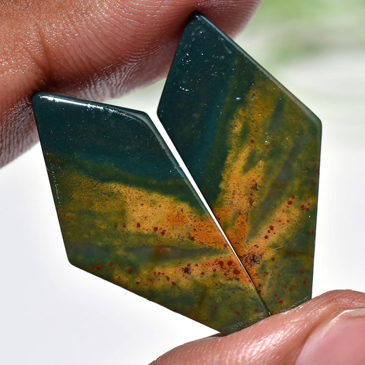 Fancy Bloodstone Cabochon Pair | Green Bloodstone Matching Pair for Custom