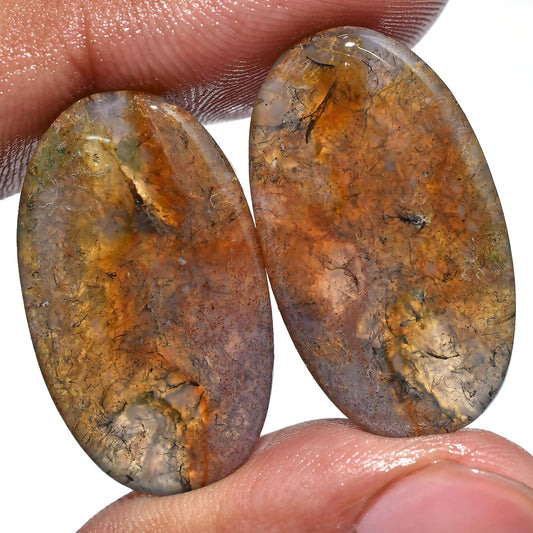 Top Quality Oval Cabochons for Earrings, Moss Agate Stone Pair