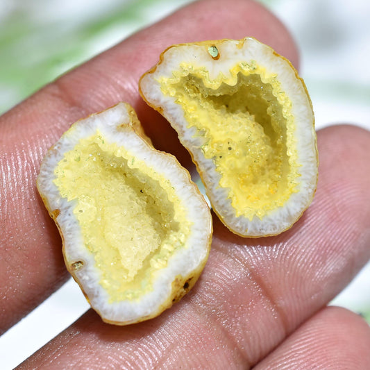 Brown Druzy Solar Quartz Gemstone Pair – Solar Slice Quartz for DIY Jewelry
