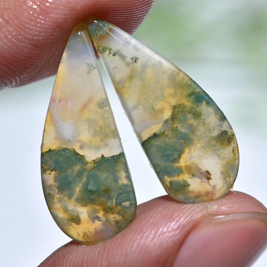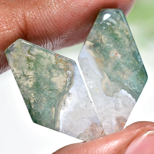 Natural Moss Agate Pair | Crystal Gemstone for Earrings & Custom Jewelry