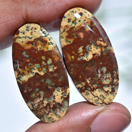 Ocean Jasper Cabochon Pair - Fancy Matching Gemstones for Earrings