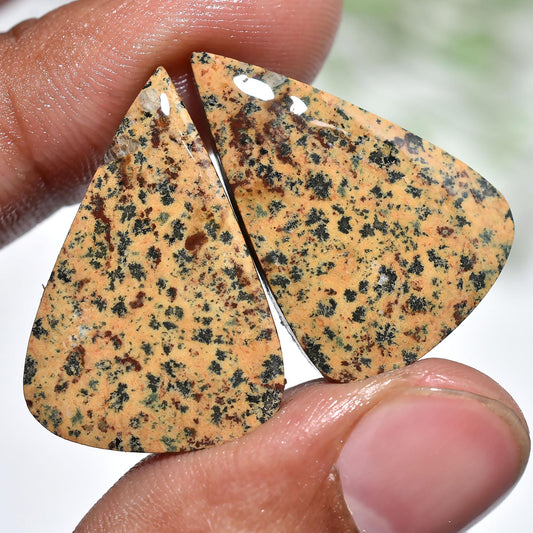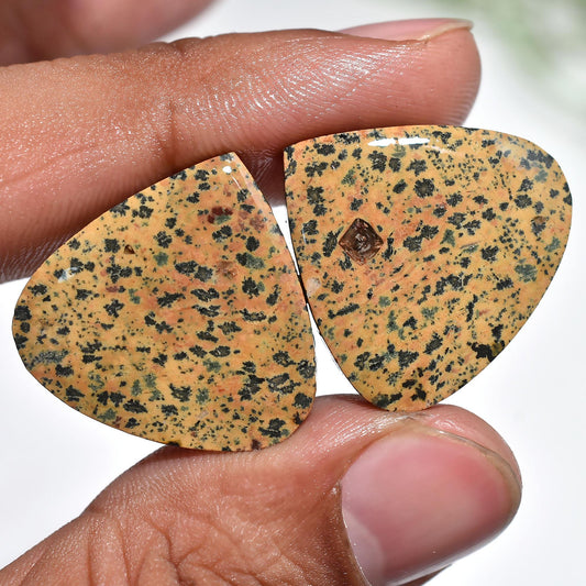 Natural Dalmatian Jasper Cabochon Pair - Pear Shaped, Polished Gemstones for Earrings | Wholesale Jewelry Stones