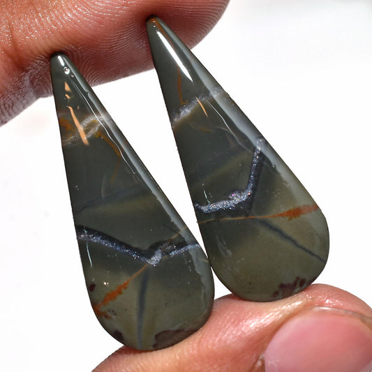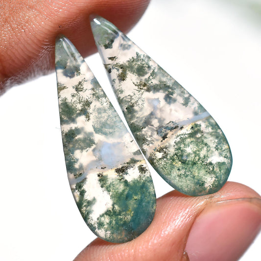 Unique Moss Agate Gemstone Pair - Pear Shaped Cabochon for Earrings Loose Matching Pair