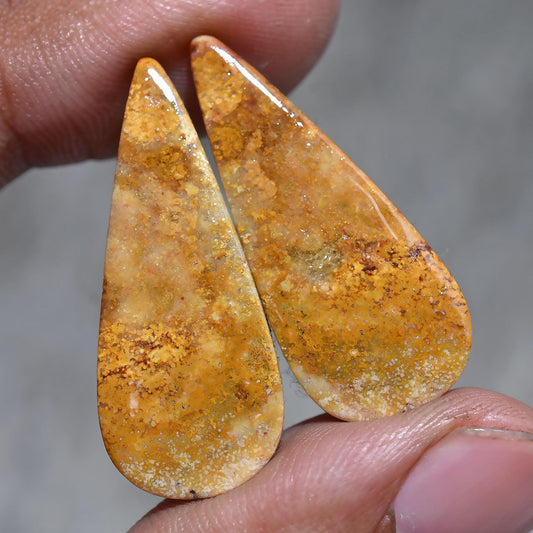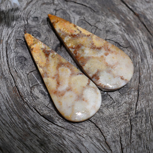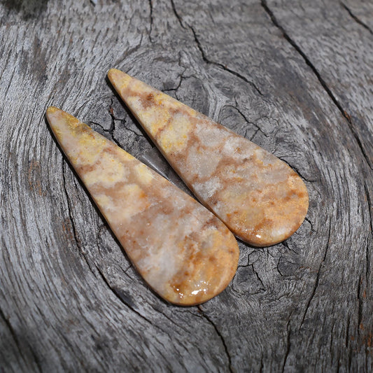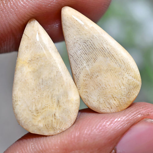 Genuine Fossil Coral Pair Cabochon - Pear Shape Gemstone for Earrings
