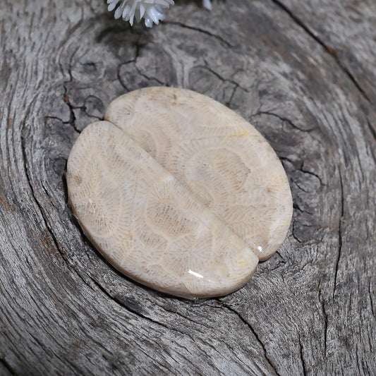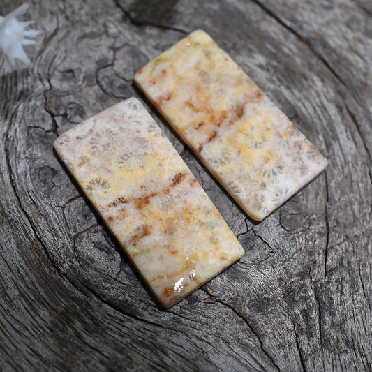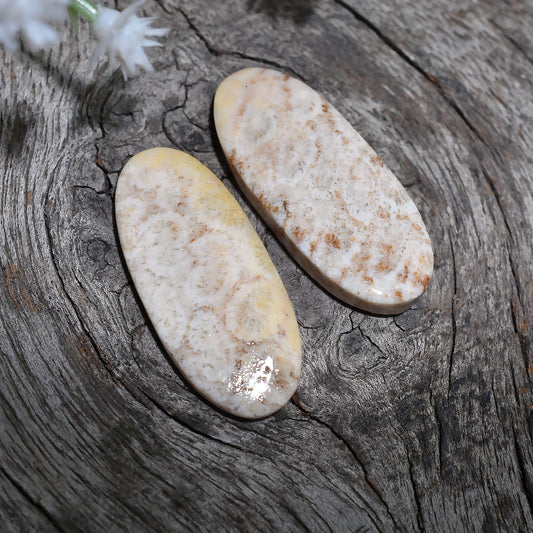 Beautiful Fossil Coral Matching Pair Cabochon - Fancy Indonesian Coral for Jewelry Making
