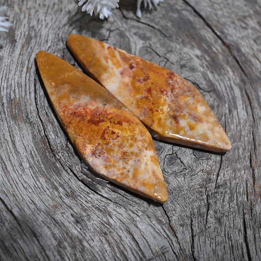 Amazing Orange Agate Pair - Fancy Shaped Banded Matching Stones for Earrings