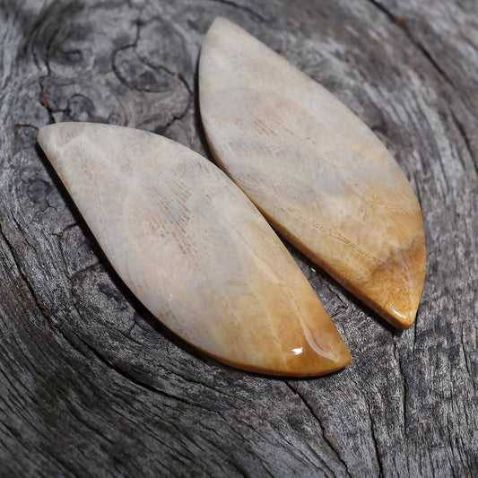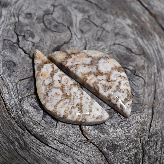 Fancy Shaped Fossil Coral Pair Gemstone - Designer Cabochon for Jewelry Making