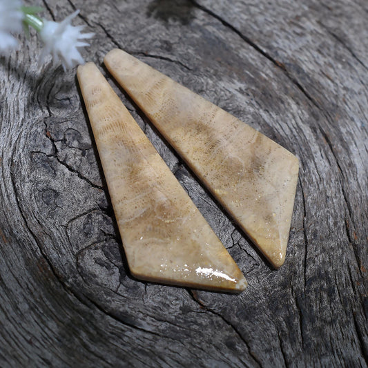 Fossil Coral Pair Cabochon, Designer Fancy Shaped Matched Gemstone for Earrings
