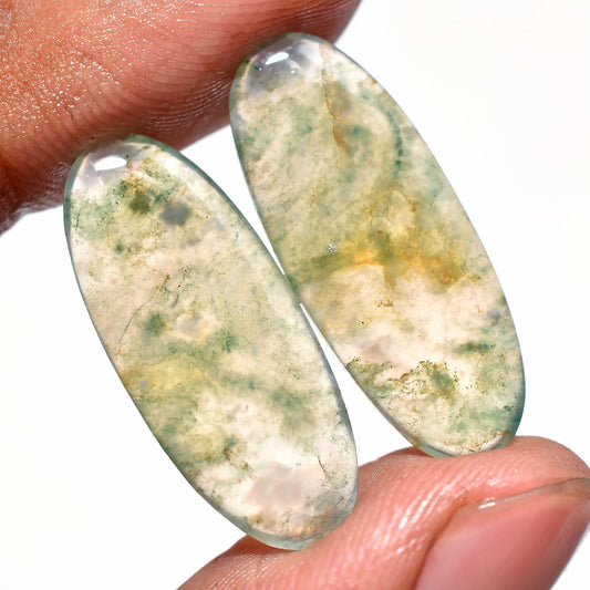 Moss Agate Cabochons Pair – Oval Gemstones for Jewelry & Crystal Healing