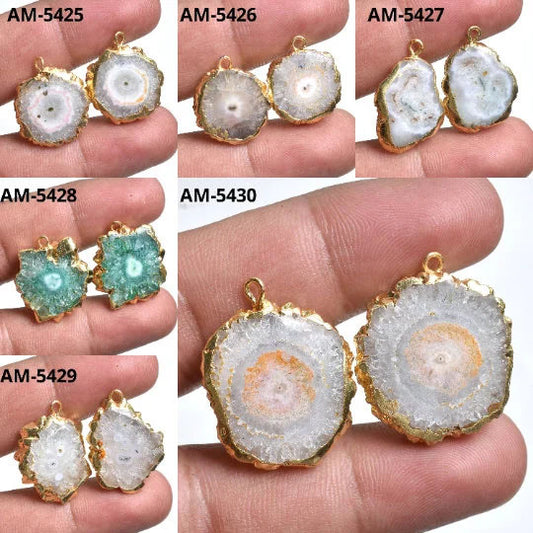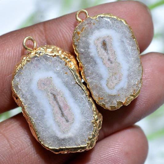 Solar Quartz Geode Earrings Pair | Gold Electroplated Druzy for DIY Jewelry