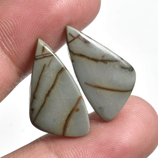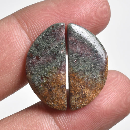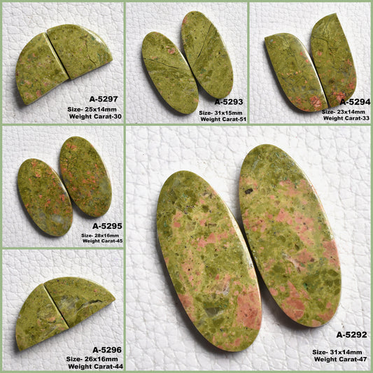 Unakite Gemstone Pair - Mixed Shape Cabochon Pair, Green Matched Stones